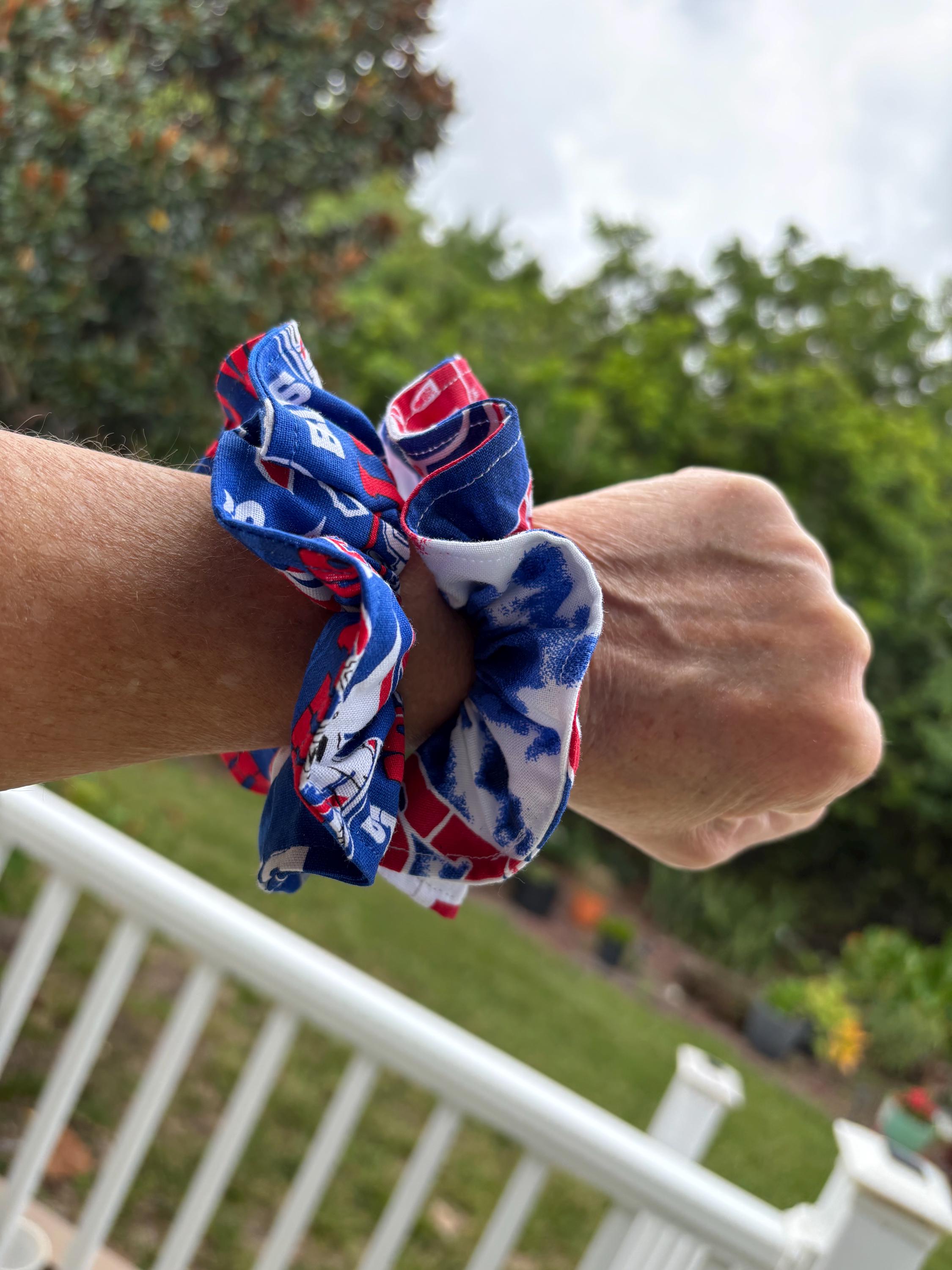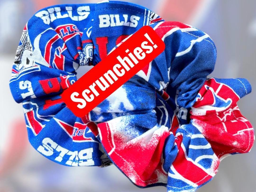 Fun Buffalo Bills Scrunchie Set. Quick and easy gift for child, teen or adult, or a special purchase for yourself! Keep your hair up in Buffalo style, whether sweating out a game or dressing up on the town! Fun for all!