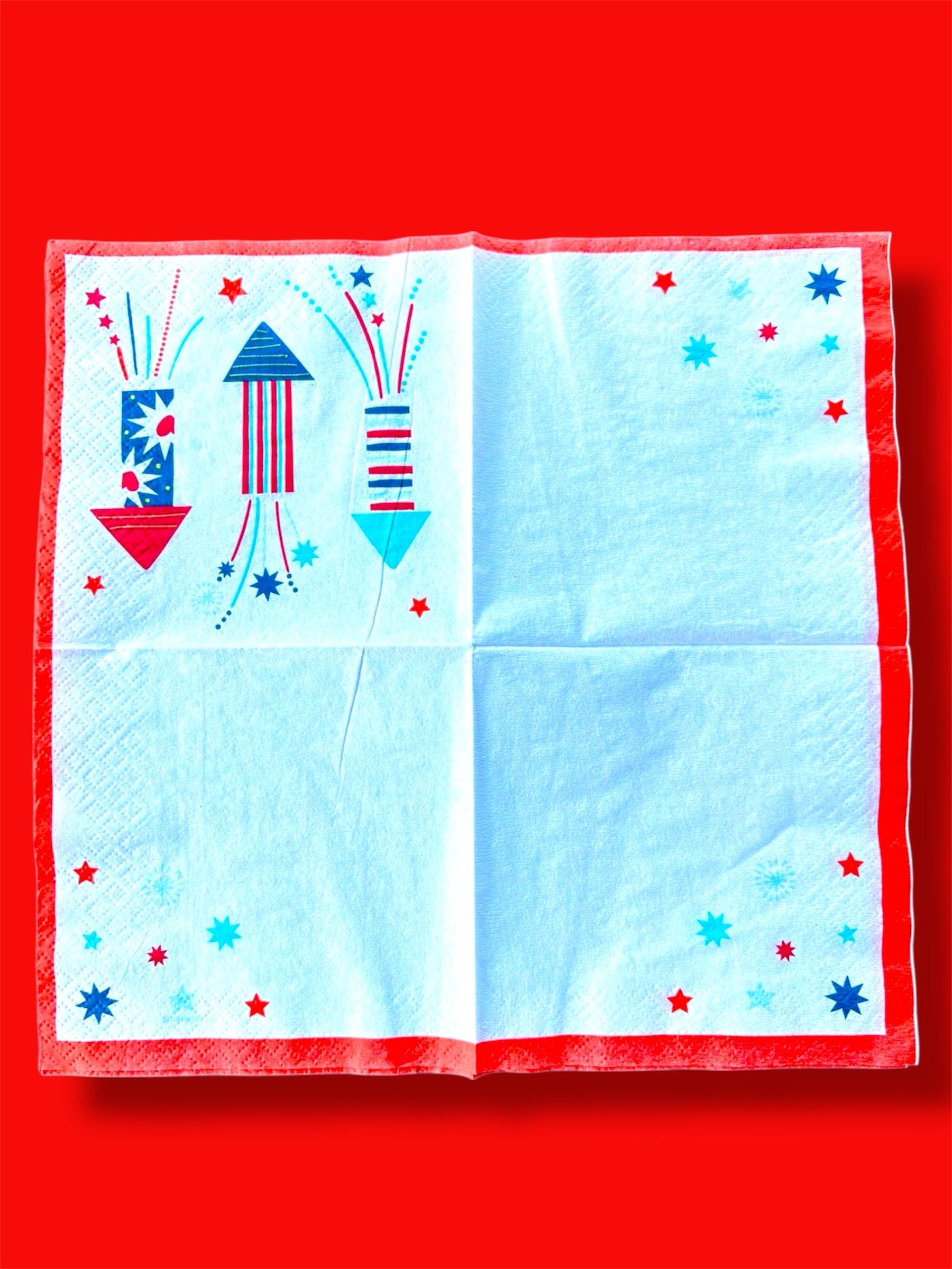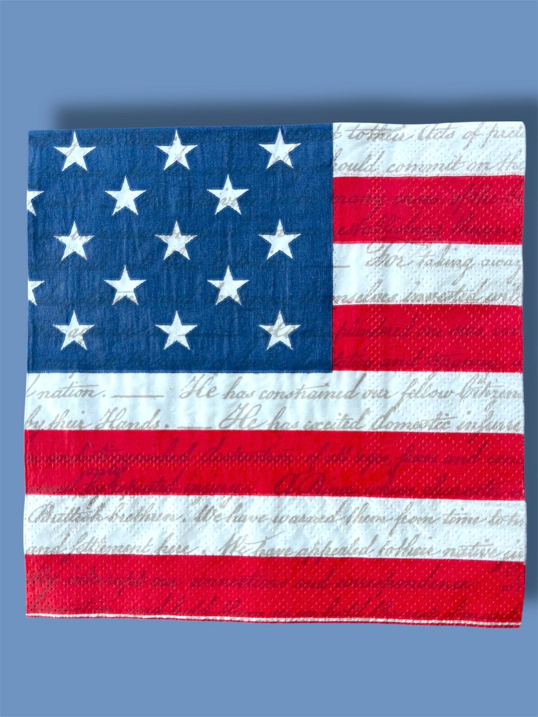 This napkin set is perfect for Decoupage, crafting or scrapbooking, oyster shell decorating- 4th of July Celebration, Patriotic Themed Party, Veterans' Day, Memorial Day, Independence Day and more. They will compliment all your red, white, and blue crafts! Buyer will receive: