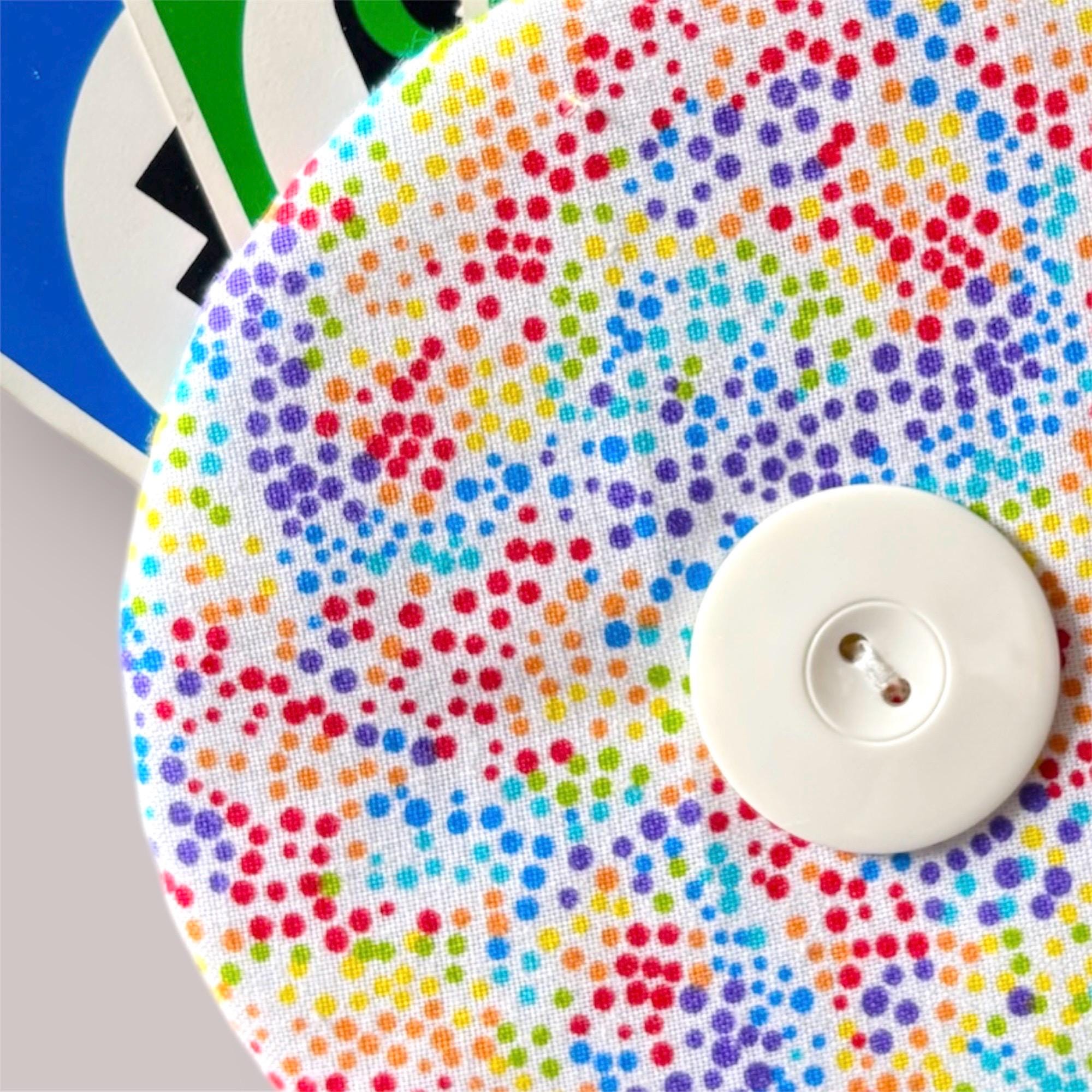 Placement of print on fabric will vary. Button color will vary.